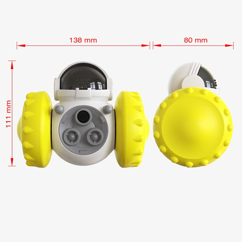 - Move-se pela gravidade, o pet deve manusear o brinquedo para que se movimente e caia o alimento.