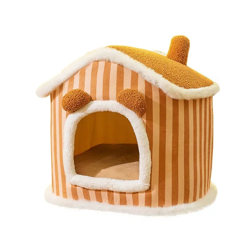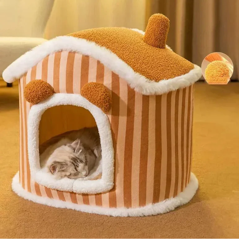 Estrutura firme que evita colapso e tombamento, proporcionando um espaço estável e aconchegante para o sono do seu gato. A tecnologia de suporte tridimensional garante durabilidade e conforto.🏡 Design Charmoso e Confortável